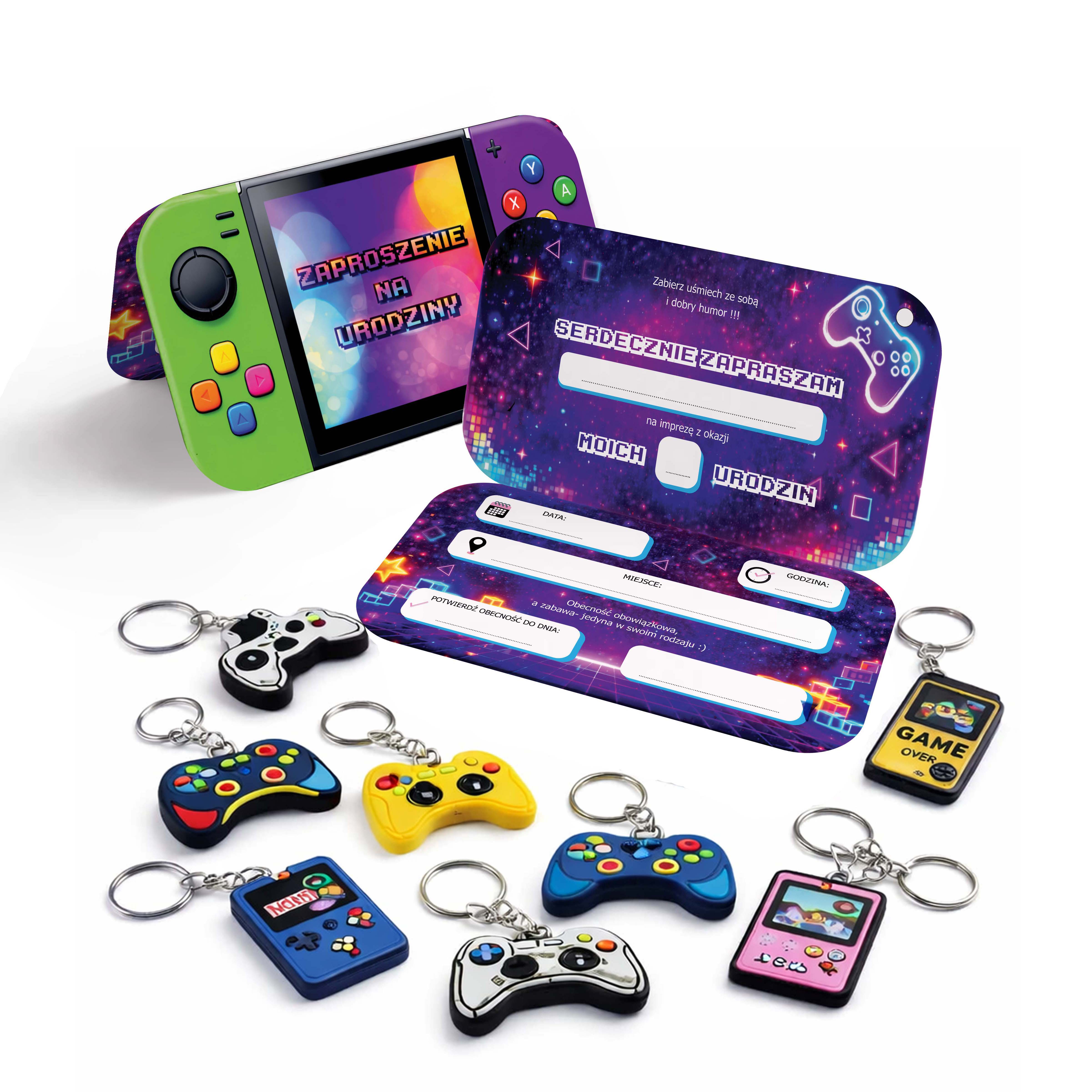 Zaproszenie gamingowe "Konsola Party" + super brelok - zestaw